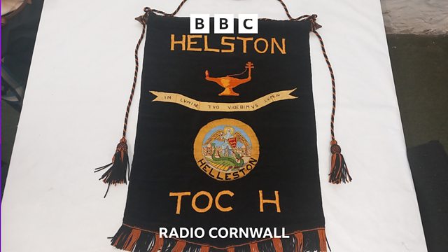 The banner is part of a collection in Helston.
