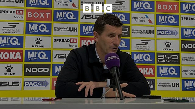 Hornets head coach, Javi Gracia reacts after Watford won 3-2 at home to Norwich.