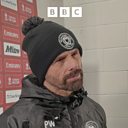 Paul Warne reacts after MK Dons go through in the FA Cup after beating Oldham 3-1.