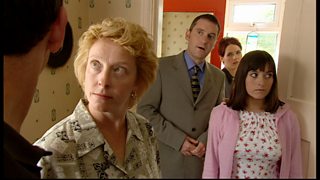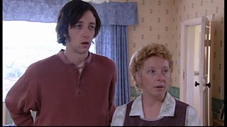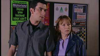 Mae ymweliad yr heddlu yn rhoi braw i Gareth ac mae'n gandryll gyda Mair am gelu'r gwir...