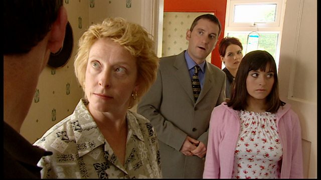 Mae diwrnod bedyddio babi Cheryl yn achlysur i'w ddathlu, ond mae presenoldeb Joyce yn ddigon i gythruddo Neil. Seeing Joyce, her new boyfriend and Gareth is enough to rattle Neil.