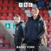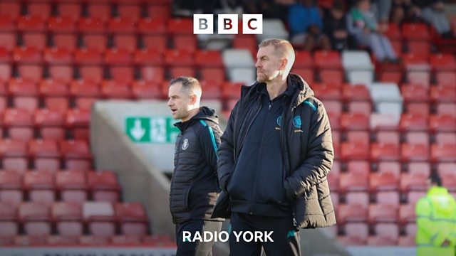 Harrogate Town manager Simon Weaver speaking to Tim Steere, after their 1-1 draw away at Cheltenham Town.