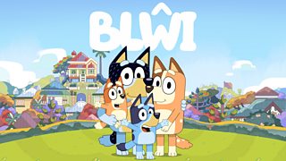 Dros y penwythnos mae Blwi a Bingo yn chwarae yn yr ardd gyda Dad. On the weekend Bluey...(A)