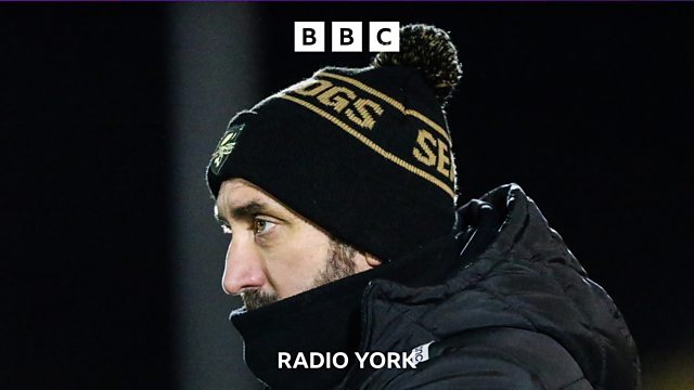 Scarborough Athletic manager Jonathan Greening speaking to Peter Spencer, after their 3-0 defeat to Radcliffe.