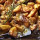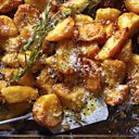 Garlic, Parmesan and herb roast potatoes topped with fragrant oil