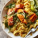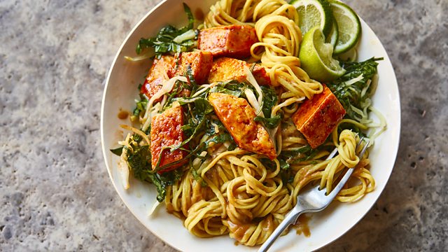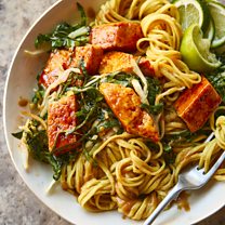 With saucy satay noodles.