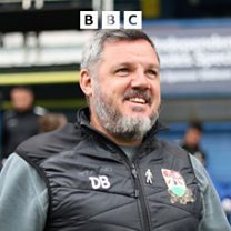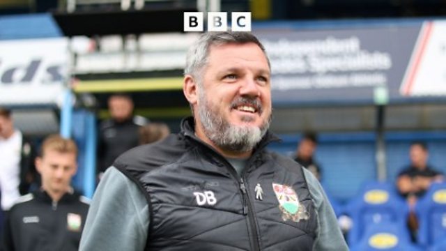 Barnet manager Dean Brennan speaks to Emma Jones after a 3-1 defeat to Salford.