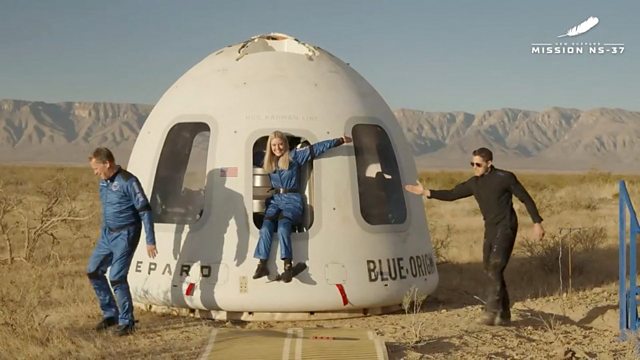 A retired space engineer who she'd contacted online helped to organise the historic ten- minute flight, which was sponsored by the space tourism firm Blue Origin owned by Amazon founder Jeff Bezos.