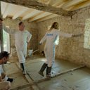 Amanda's gymnastics skills come in handy collecting Stamatis's phone across a wet concrete floor.