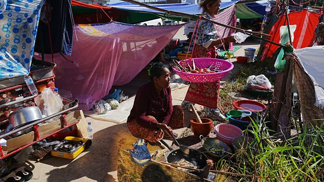 (Picture: A woman cooks food as she takes refuge in Prey Chamkar Ta Doak market in Banteay Meanchey province, Cambodia, after fleeing home following fighting along the Thailand-Cambodia border. Credit: AP Photo/Heng Sinith)