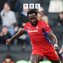 Defender Manny Monthe reacts to a goalless draw at Grimsby in League Two.