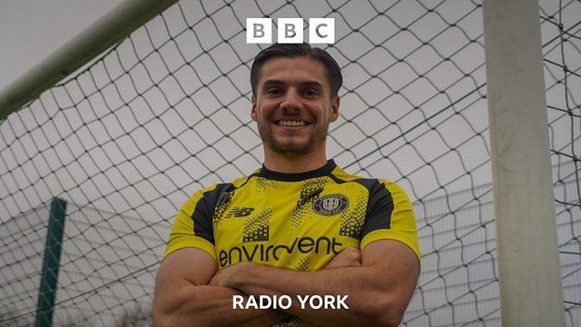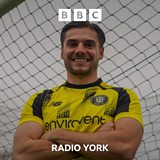 Harrogate Town defender Grant Horton speaking to Peter Spencer, after signing for the club until the end of the season.
