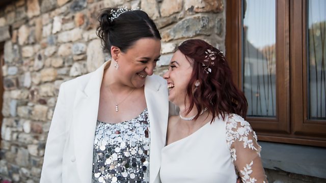 Am y tro cyntaf erioed, mae'r cofrestrydd sy'n priodi Becky a Zoe yn ffrind ac yn forwyn briodas - handi iawn! The registrar who marries Becky and Zoe is also a friend and bridesmaid.