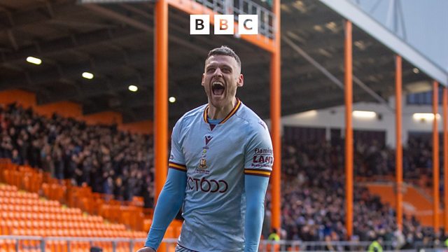 Aden Baldwin reacts to scoring his first Bradford City goal as the Bantams return to winning ways with victory at Blackpool.