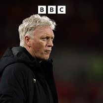 Everton manager David Moyes reacts to his side's 4-2 defeat to Brentford at Hill Dickinson Stadium in the Premier League. He also talks about Harrison Armstrong