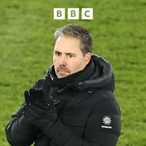 Marti Cifuentes reacts to Leicester City's late win against West Bromwich Albion.