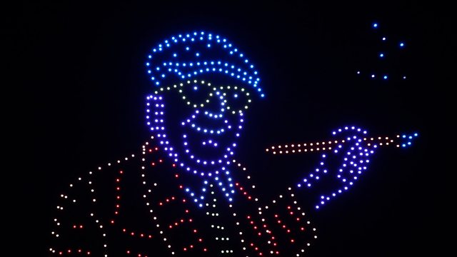 More than 600 illuminated drones recreated some of the 88-year-old painter's most famous works in an aerial display in Saltaire.