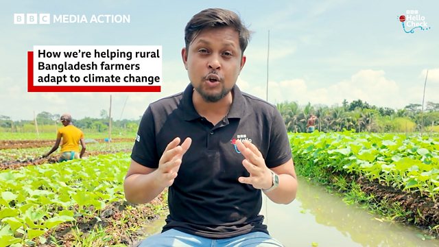 Our BBC Hello Check team meets farmer Jamal and his family as they show how to build a floating bed made mostly from water hyacinth. This climate-smart technique has been used for generations in flood-prone areas enabling crops to grow even during monsoons.