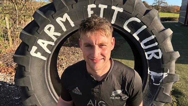 Mae'r ffermwr Robin Jones yn cynnal dosbarthiadau ffitrwydd ar ei fferm ger yr Wyddgrug.