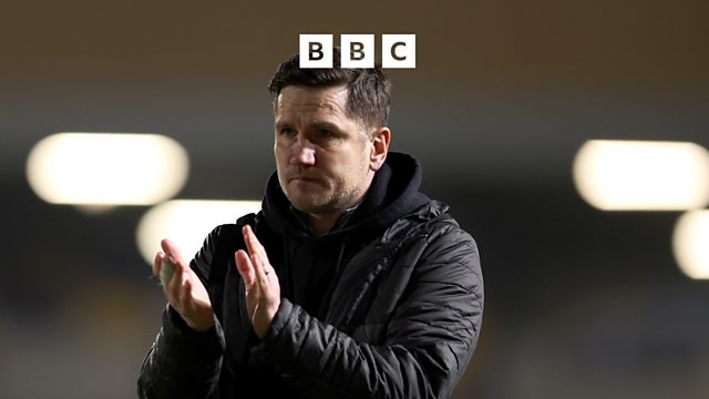 The Crewe Alex manager Lee Bell speaks to Graham McGarry after their draw with Harrogate.
