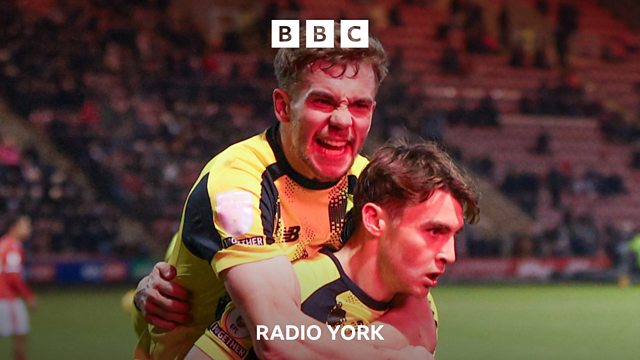 Harrogate Town striker Tom Cursons speaking to Tim Steere after scoring in their 1-1 draw with Crewe Alexandra.