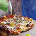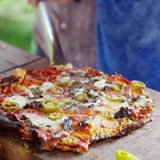 Robson and Rishi's carefully assembled pizza turns into a sort of calzone...