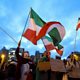 (PHOTO: People wave flags during a demonstration in support of the national protests in Iran, in Barcelona, Spain January 13, 2026. Credit: REUTERS/ Albert Gea).