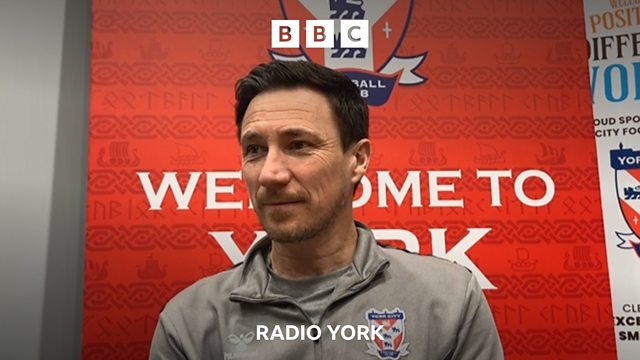 York City manager Stuart Maynard speaking to David Ward, ahead of their match against Southend United.