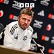 Michael Carrick reacts to beating rivals Man City 2-0 at Old Trafford.