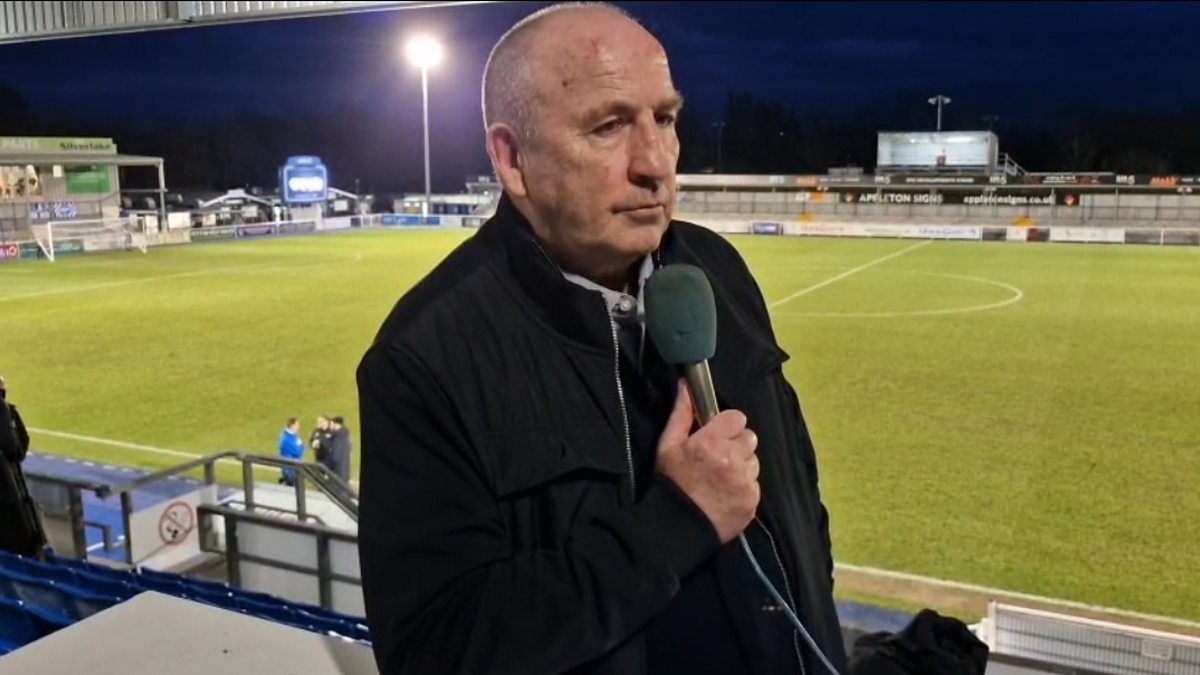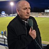 Aldershot Town boss John Coleman speaks to Rob Worrall after the 4-1 win at Eastleigh