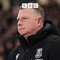 Stoke City's manager speaks to Mark Elliott after their 2-1 defeat to Middlesbrough.