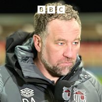 Matt Dean talking to David Artell after Grimsby Town's 0-2 win away at Cheltenham. PIC:RH