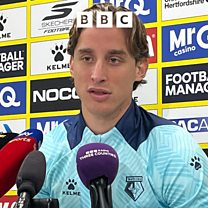 Watford's new signing Edoardo Bove is looking forward to resuming his career with a cardiac defibrillator inside him following his collapse on the pitch in Italy in December 2024. Image: Geoff Doyle/BBC