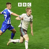 Harvey Rodgers talks to Tom Murray after Grimsby Town's 1-0 win over Colchester United.