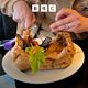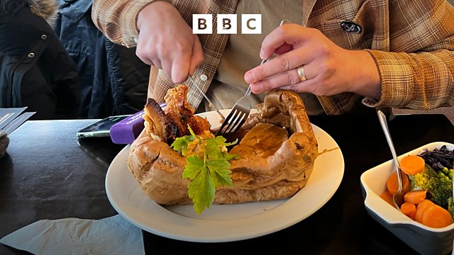 Antony Collins eats three courses of Yorkshire puddings at a pub near Tadcaster.