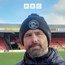 Paul Warne reacts after MK Dons win 3-2 against Cheltenham Town away from home.