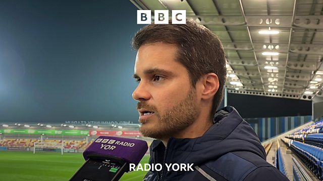York City assistant manager Joao Alves speaks to David Ward after their 2-1 victory over Forest Green Rovers.