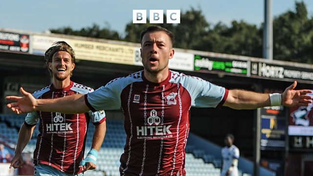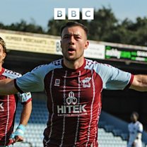The Scunthorpe United vice-captain celebrates making a century of appearances for the club after scoring the winner in the 1-0 victory at home to Southend United in the National League.