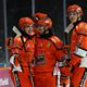 Sheffield Steelers forward Kyle Watson speaking to Peter Spencer, after scoring his first goal for the club.
