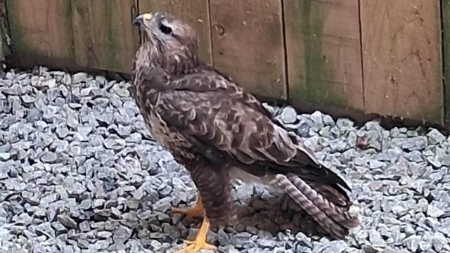 This buzzard was trapped up to its neck in sludge before workman Keith came to the rescue