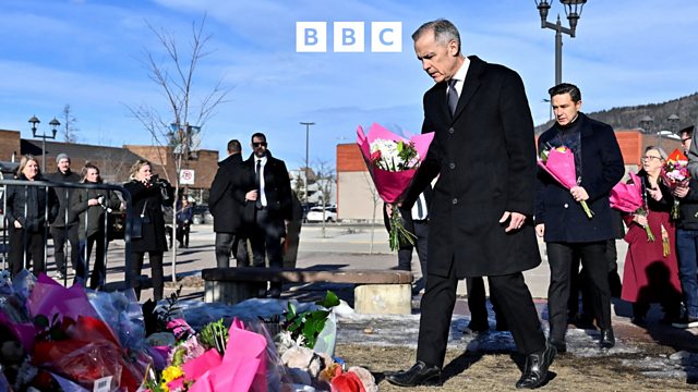 The Canadian Prime Minister, Mark Carney, and opposition leaders have laid flowers at a memorial in Tumbler Ridge, British Columbia, to the eight victims of a teenage killer. The estranged father of the suspect has offered his condolences. Also: the leaders of France and Germany have urged the continent to be more assertive in President Trump's new world order. The UN calls on Israel to reverse plans to give itself new powers in the occupied Palestinian West Bank, saying it jeopardises the prospect for a two-state solution. With inflation at around sixty per cent in Iran and the local currency in free-fall against the dollar, we talk to locals in a market in the capital, Tehran. Gisèle Pelicot, the woman at the centre of the largest rape trial in French history, tells the BBC she was "crushed by the horror" of her ordeal - but describes herself as a "survivor". And as couples across the world mark Valentine's Day, we look at why people are increasingly drawn to romantic historical dramas?