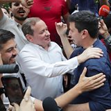 (Photo: Opposition leader Juan Pablo Guanipa, a close ally of María Corina Machado, hugs former councillor Jesús Armas following their release from prison in Caracas, Venezuela, 08 February 2026. Credit: Ronald Pena R/EPA/Shutterstock )