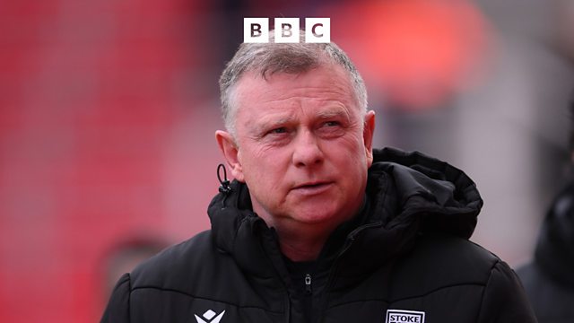 Stoke City manager Mark Robins speaks to Mark Elliott after their 2-1 defeat to Fulham.