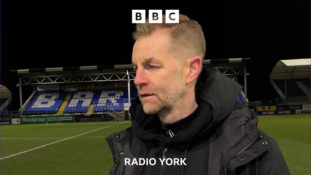 Harrogate Town manager Simon Weaver chats to Tim Steere following their hard fought 1-0 win away at Barrow.