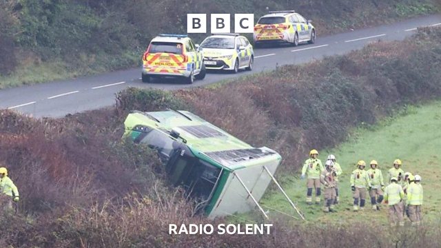 A bus overturned in Brading on the Isle of Wight, launching an emergency incident.