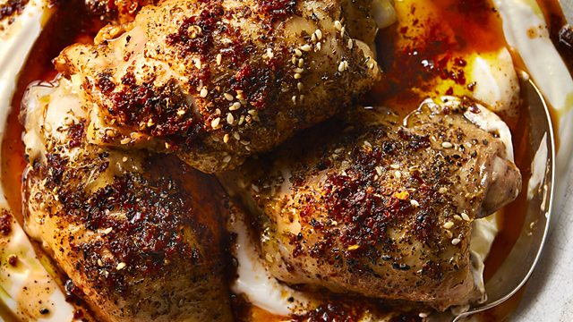 Crispy za’atar chicken with garlic yoghurt and spiced butter