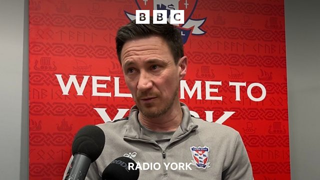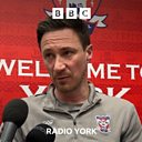 York City manager Stuart Maynard speaking to Peter Spencer, ahead of their Yorkshire derby with FC Halifax Town.