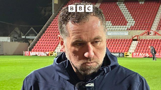 Head coach David Artell talks to Matt Dean after the 3-1 defeat to Bristol Rovers.
