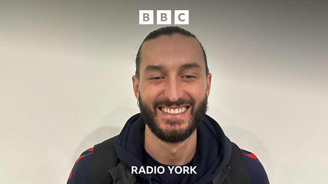York City's Ollie Banks speaking to David Ward, after their 4-1 win over FC Halifax Town in the National League.