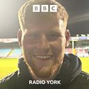 York City forward Josh Stones speaking to David Ward, after a 3-0 victory away at Scunthorpe United. The result sent the Minstermen top of the National League.